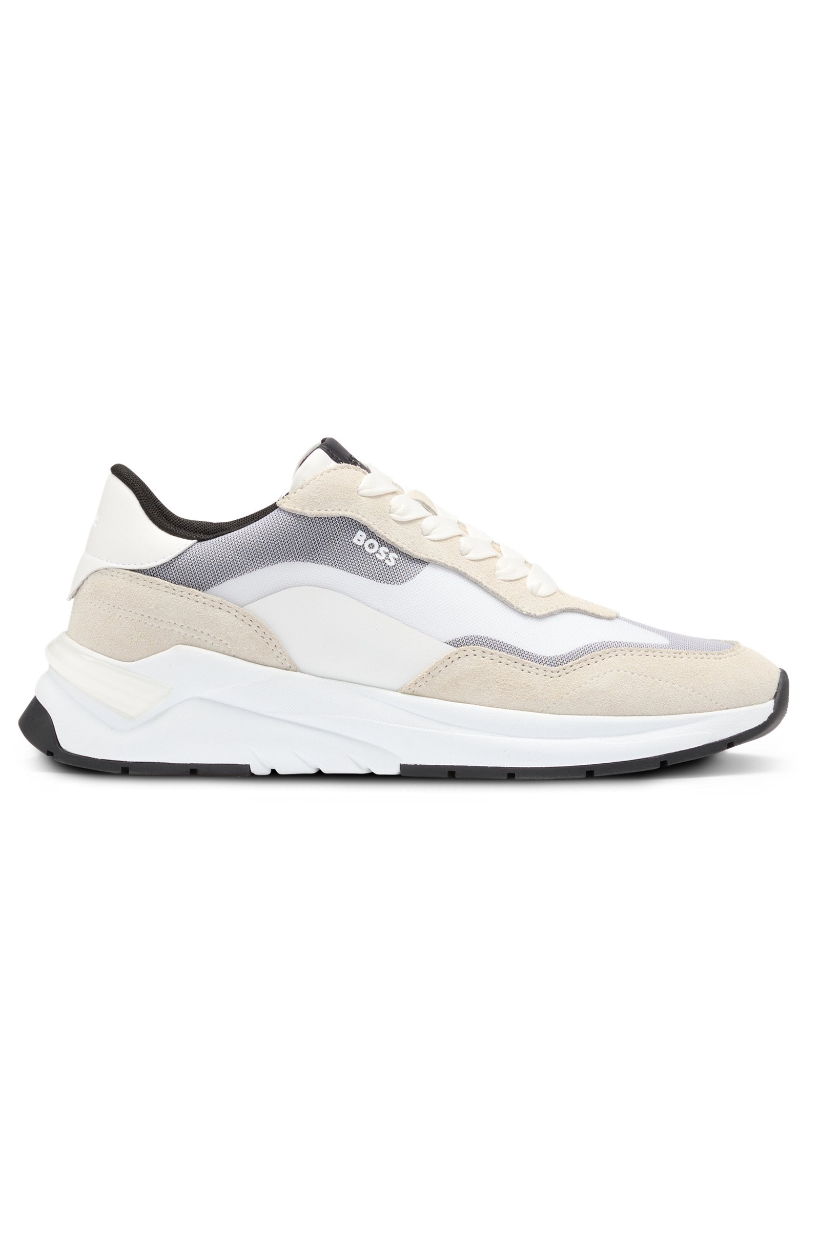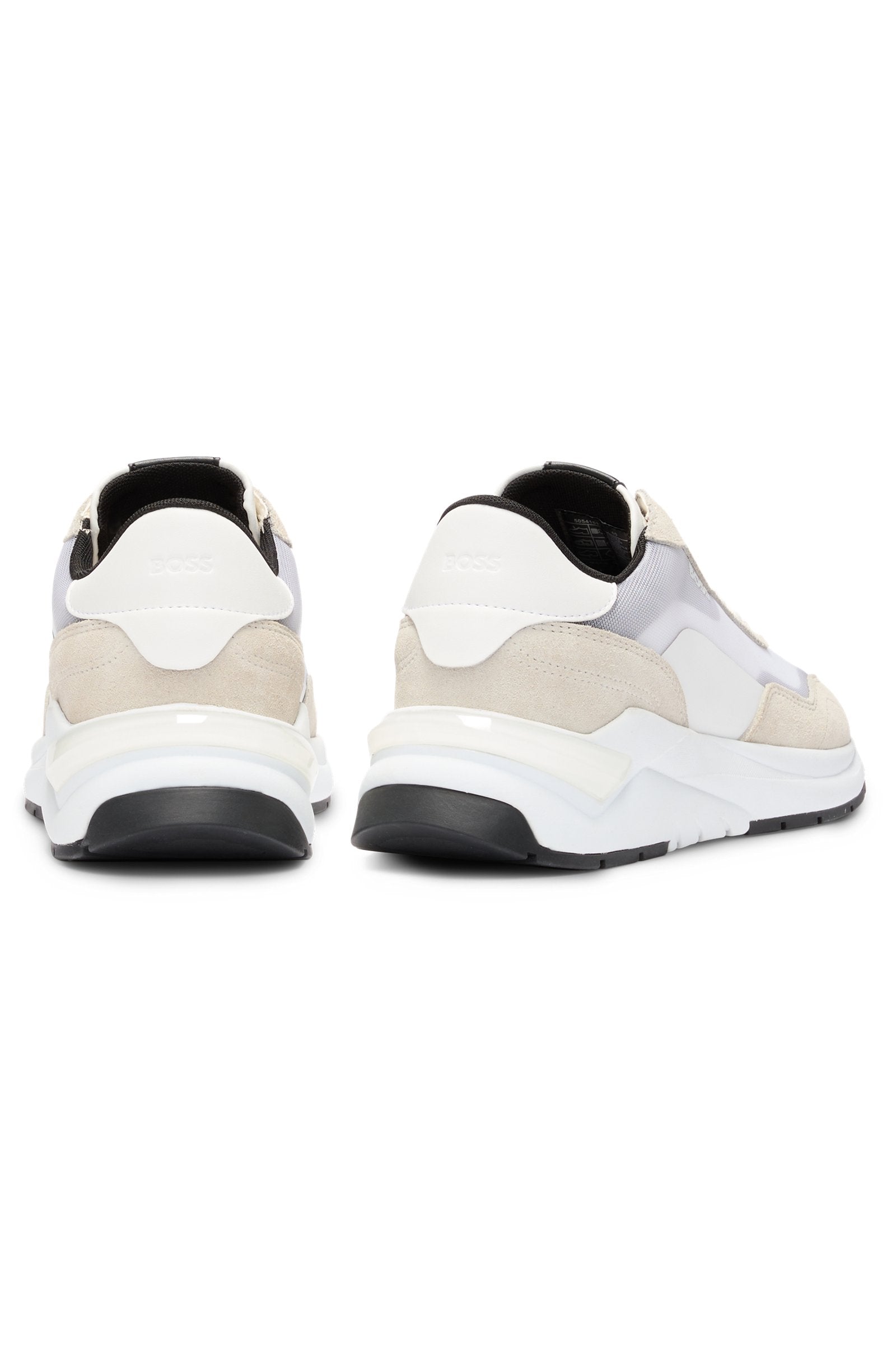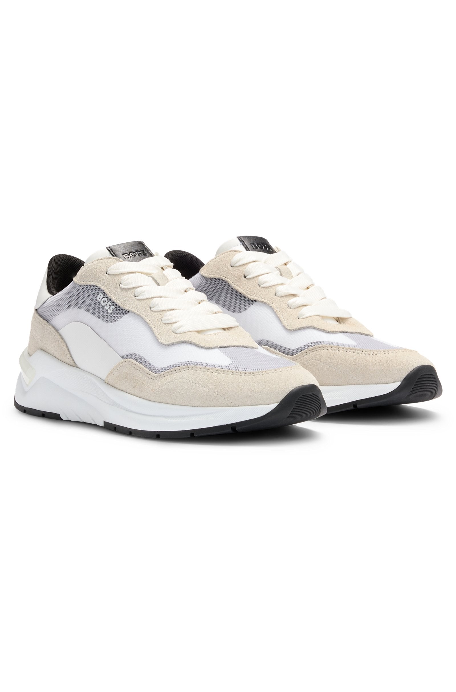 BOSS Running-Inspired Trainers (50541617_110) är ett par moderna damsneakers som förenar sportig prestanda med sofistikerad design. Tillverkade i en kombination av luftig mesh och lyxig mocka, vilket ger både stil, andningsförmåga och perfekt komfort för dagligt bruk.
