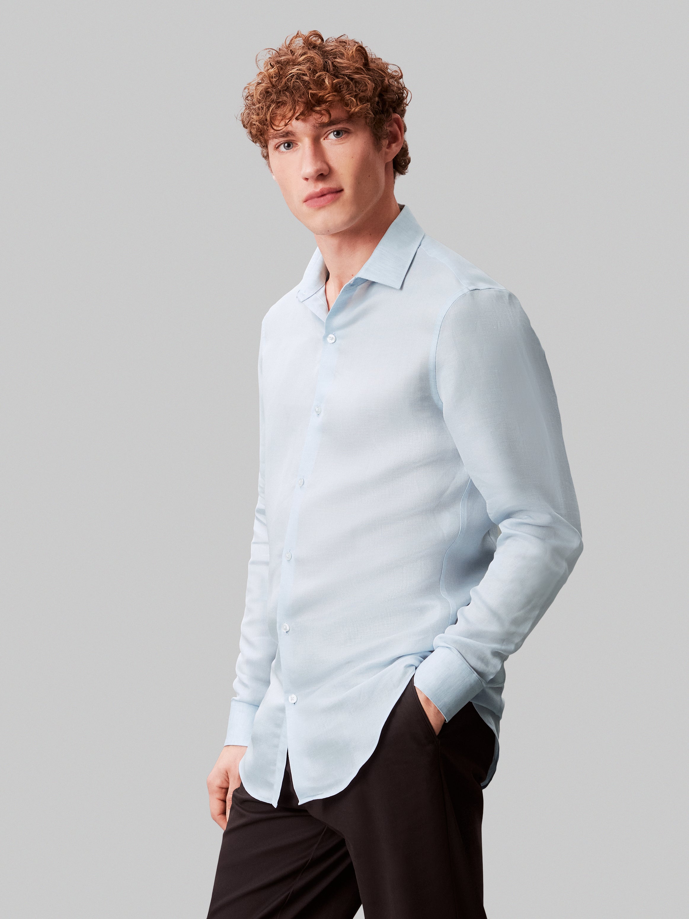 Calvin Klein Menswear definierar modern elegans med rena silhuetter, exklusiva material och en tidlös, skräddad känsla. Denna slim fit-skjorta i en raffinerad linne- och lyocellblandning är skapad för att kombinera struktur med överlägsen komfort.