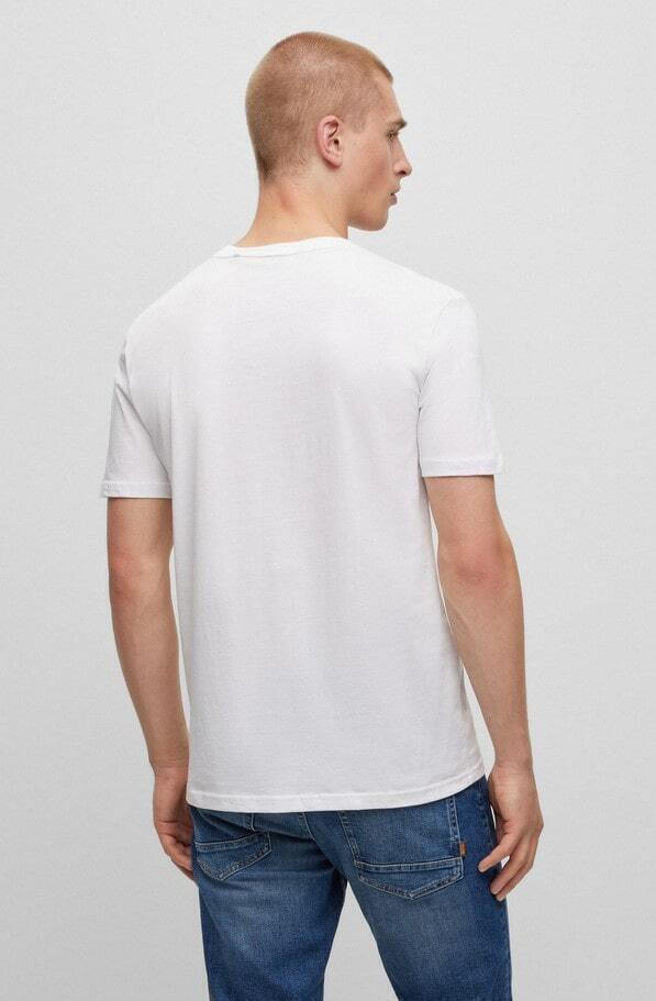 BOSS Orange Thinking 1 är en klassisk bas-tee som kombinerar enkel design med märkesidentitet. Den finns i vit och svart och kommer i regular fit-passform — perfekt att bära själv eller som layering under jackor och skjortor. Johnells beskriver modellen som: