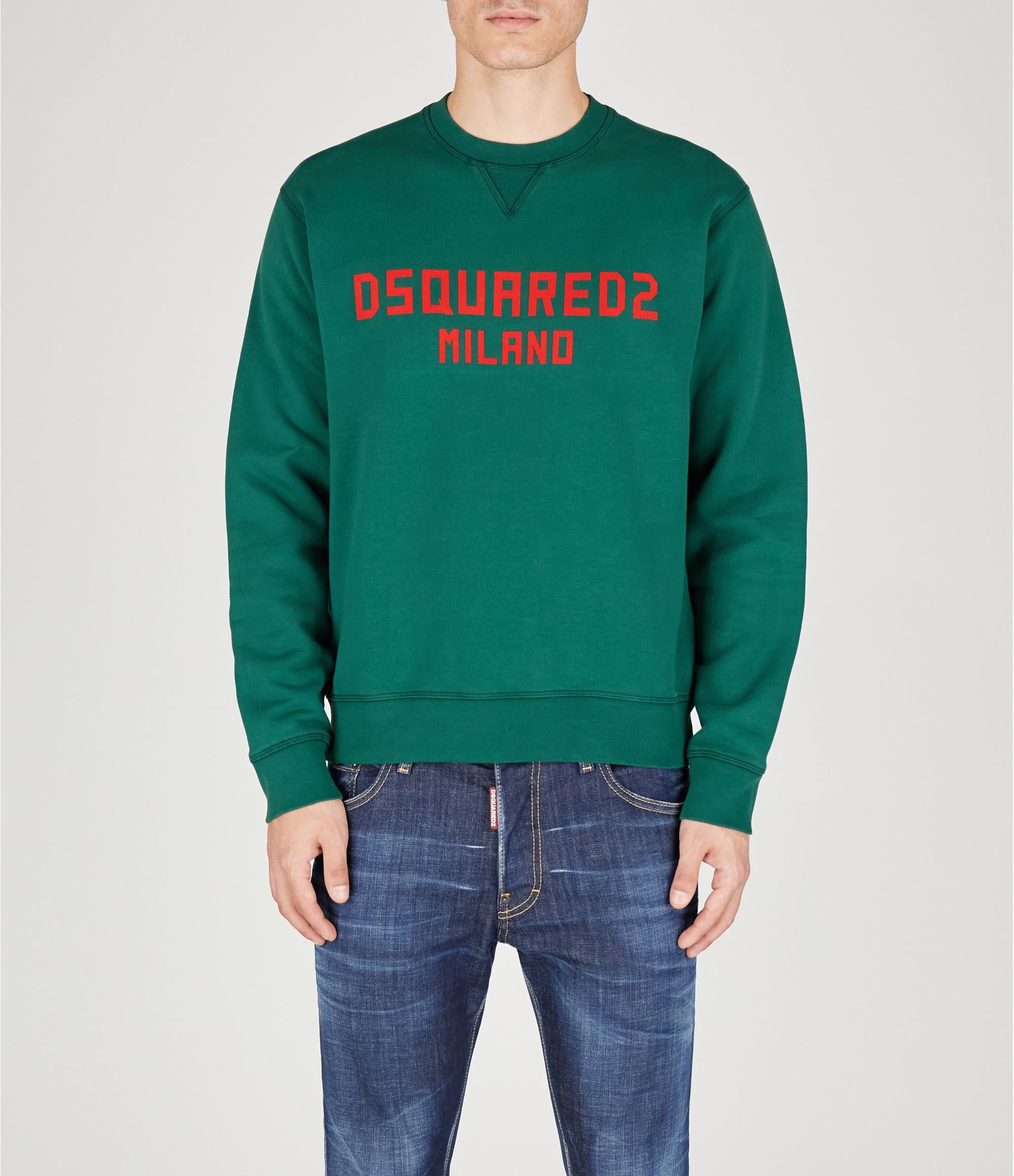 Sweatshirten har en Cool Fit-passform, vilket innebär en något lösare siluett som balanserar mellan avslappnat och stilrent. Framtill pryds plagget av det ikoniska Dsquared² Milano-logoprintet, som hyllar märkets rötter i den italienska modemetropolen.