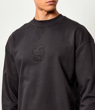BOSS Tröja Herr – Grå Bomullssweatshirt med Double-B Monogram