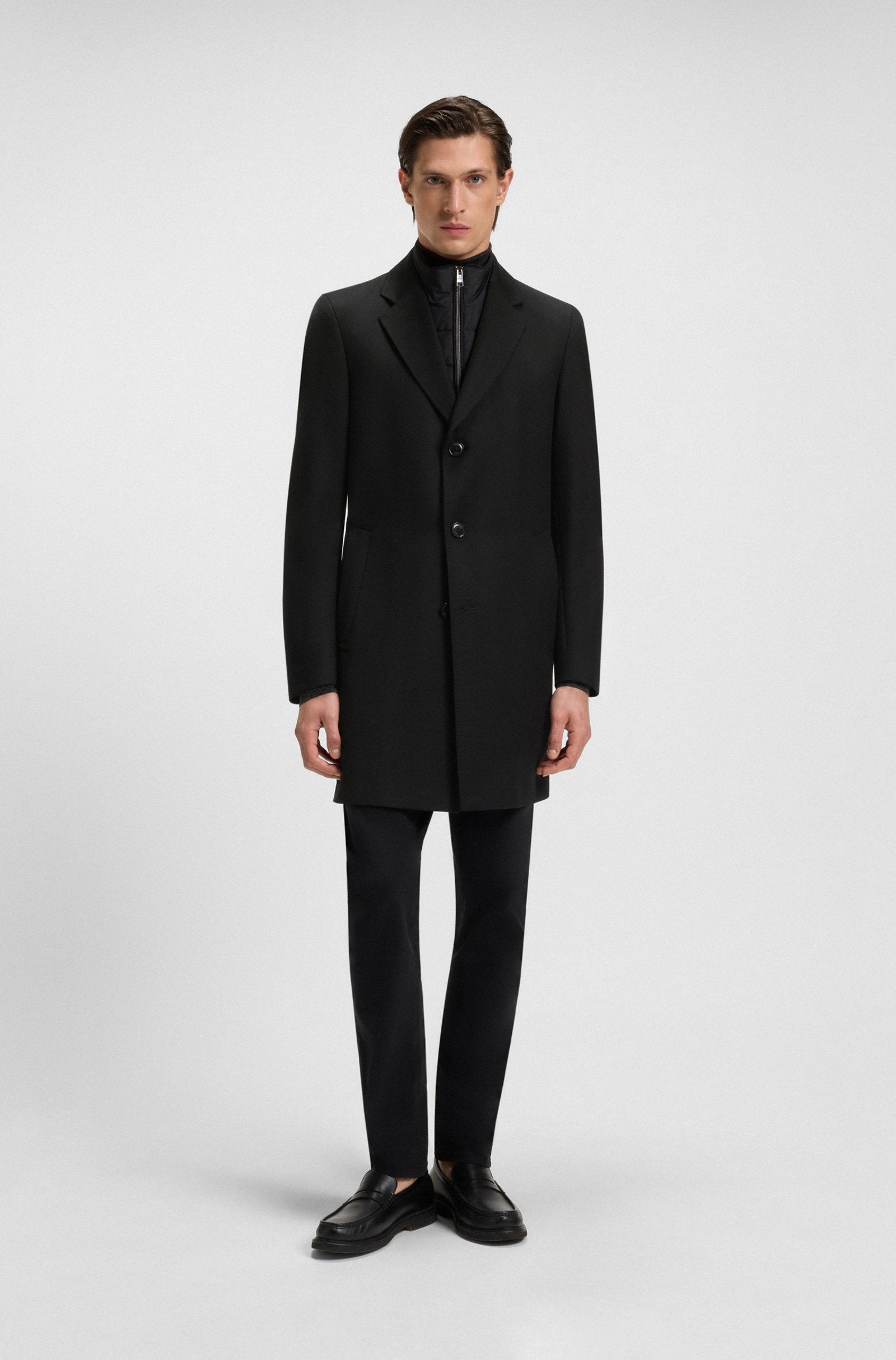 Det smarta med denna rock är den avtagbara innerdelen, som gör plagget flexibelt året runt – använd den med innerfodret under kyliga höstdagar och ta ur det när temperaturen stiger. Rockens smala passform och rena linjer gör den perfekt att bära över både kostym och vardagsoutfits.