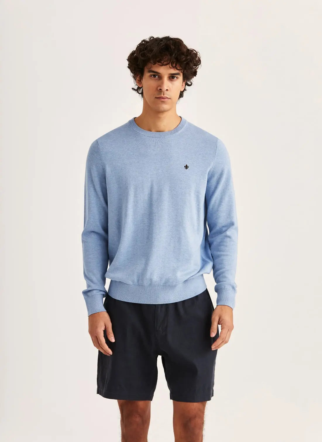 Morris Stockholm Riley Oneck är en stickad rundhalströja i 100% bomull med en balanserad vikt som gör den tillräckligt lätt för att bäras som ett ensamt plagg under svalare sommarkvällar men med tillräcklig stadga för att hålla formen och falla snyggt mot kroppen. Stickningens kvalitet ger en len yta utan att tyget är tunt eller genomskinligt, vilket är en distinktion som skiljer Riley Oneck från tunnare sommargestrickat. Den normala passformen är rakskuren med en plagglängd om 66 cm i storlek M, bröstvidd 53 cm och axelbredd 42 cm, vilket ger ett avslappnat men välsittande intryck utan att tröjan sitter löst. Den runda halsringningen är en tidlös konstruktion som fungerar lika väl ensam som under en öppen kavaj eller en vadderad väst ur kollektionen. Morris broderade signaturlilja på bröstet tillför varumärkets karakteristiska signatuurdetalj i diskret utförande. Tröjan fungerar naturligt tillsammans med kollektionens linne- och bomullsbyxor samt kavajer och passar sömlöst in i ett smart casual-register. Tillgänglig i storlekarna S till XL och i sju färger: khaki, old blue, grön, blå, brun, olive och rosa. Maskintvätt 30 grader, ej blekning, ingen torktumling, kemtvätt med perkloretylen godkänt, strykes ej.