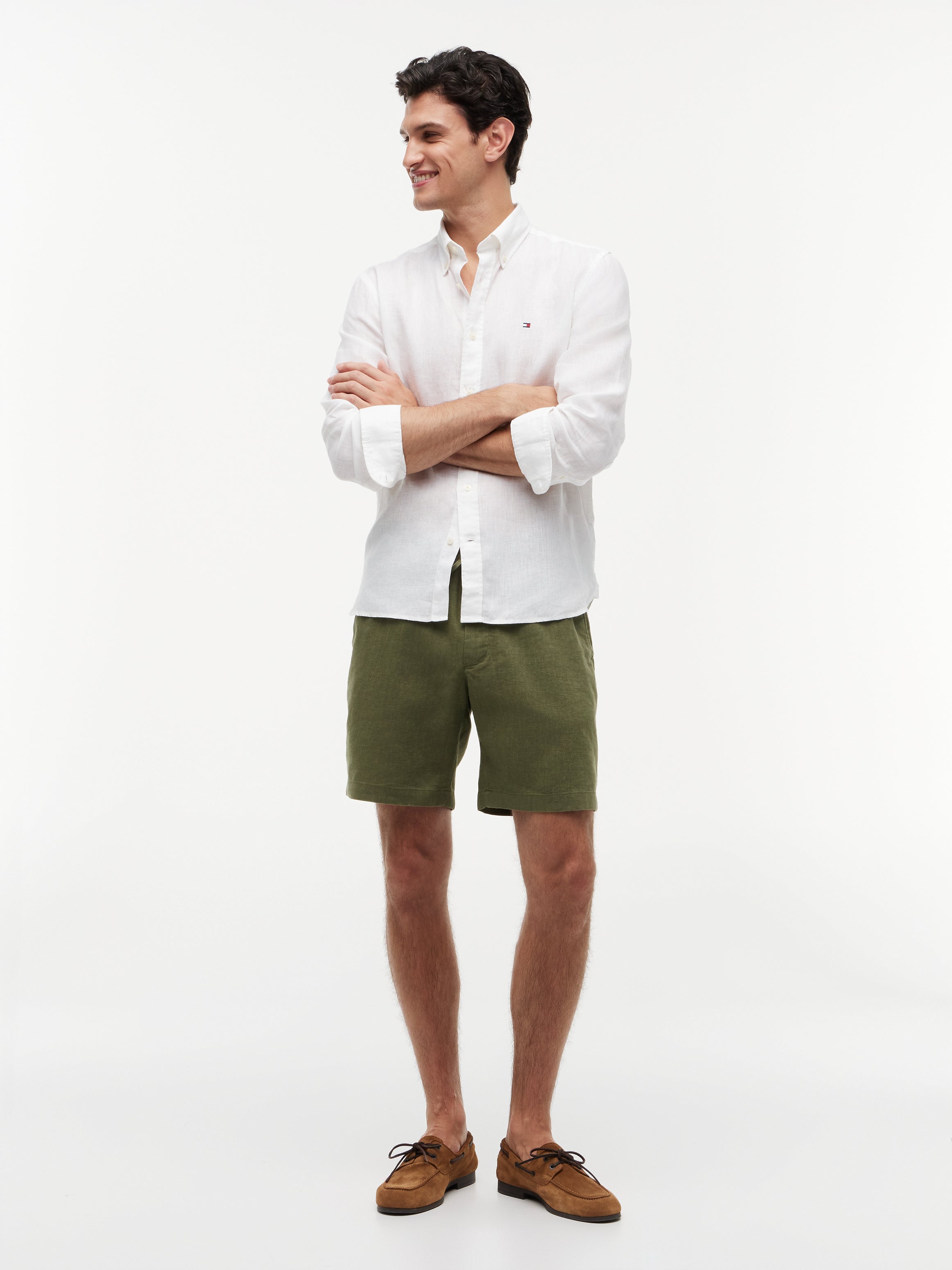 Tommy Hilfiger chino shorts i linneblandning är ett självklart val för varma dagar. Den luftiga materialmixen ger en sval och bekväm känsla samtidigt som modellen behåller en skarp och välarbetad silhuett.