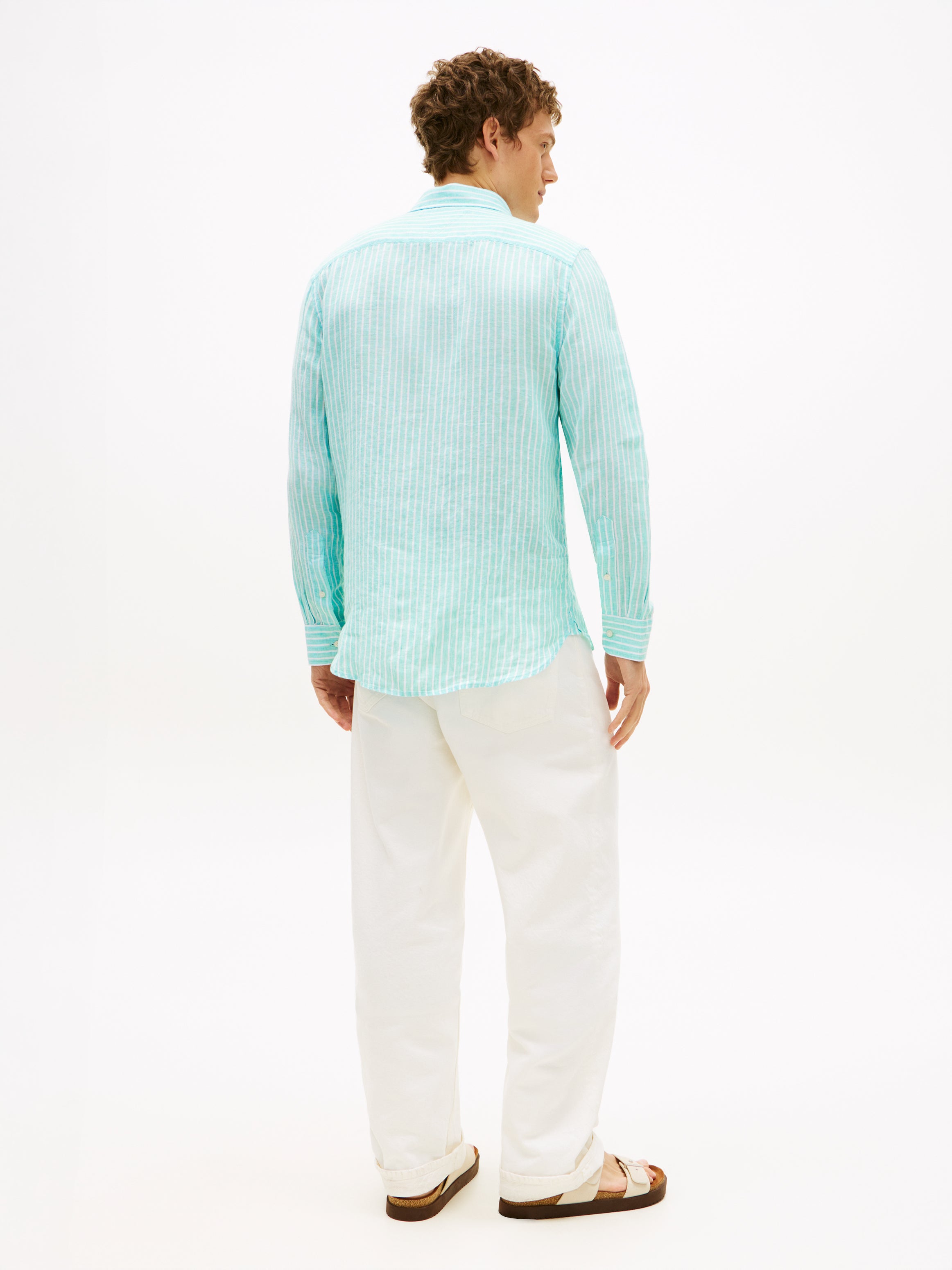 Den garnfärgade randningen i Arctic Aqua skapar en fräsch blå ton med klassisk karaktär. Button-down-kragen och de rundade enkelmanschetterna förstärker den avslappnade men välklädda känslan – perfekt till både chinos, kostymbyxor och ljus denim.