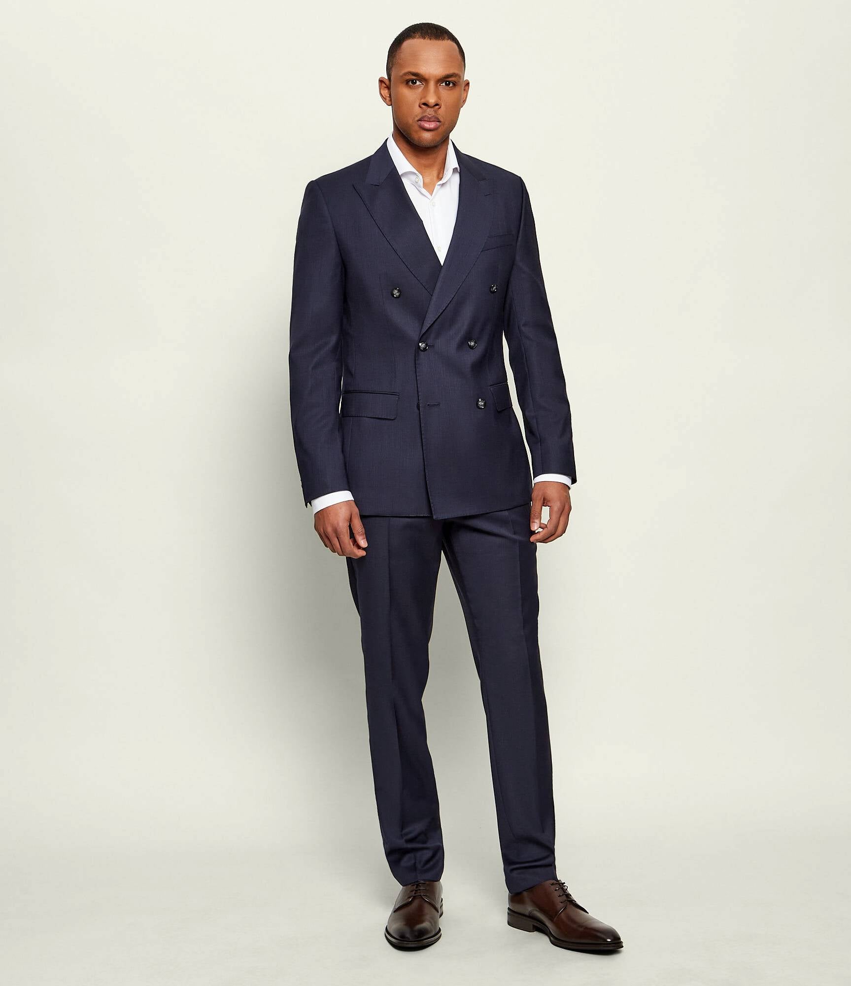 En sofistikerad dubbelknäppt kostym från BOSS Black, skräddad i 100% ull för en exklusiv känsla och perfekt struktur. H-Huge 2pcs-DB-254 är designad för mannen som vill kombinera klassisk elegans med en modern, väldefinierad silhuett.