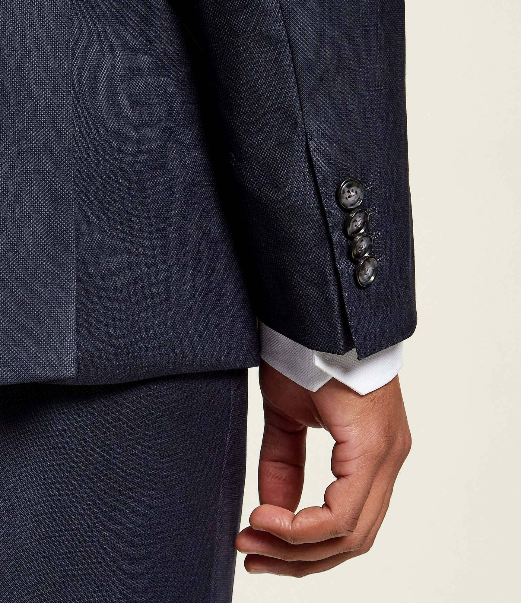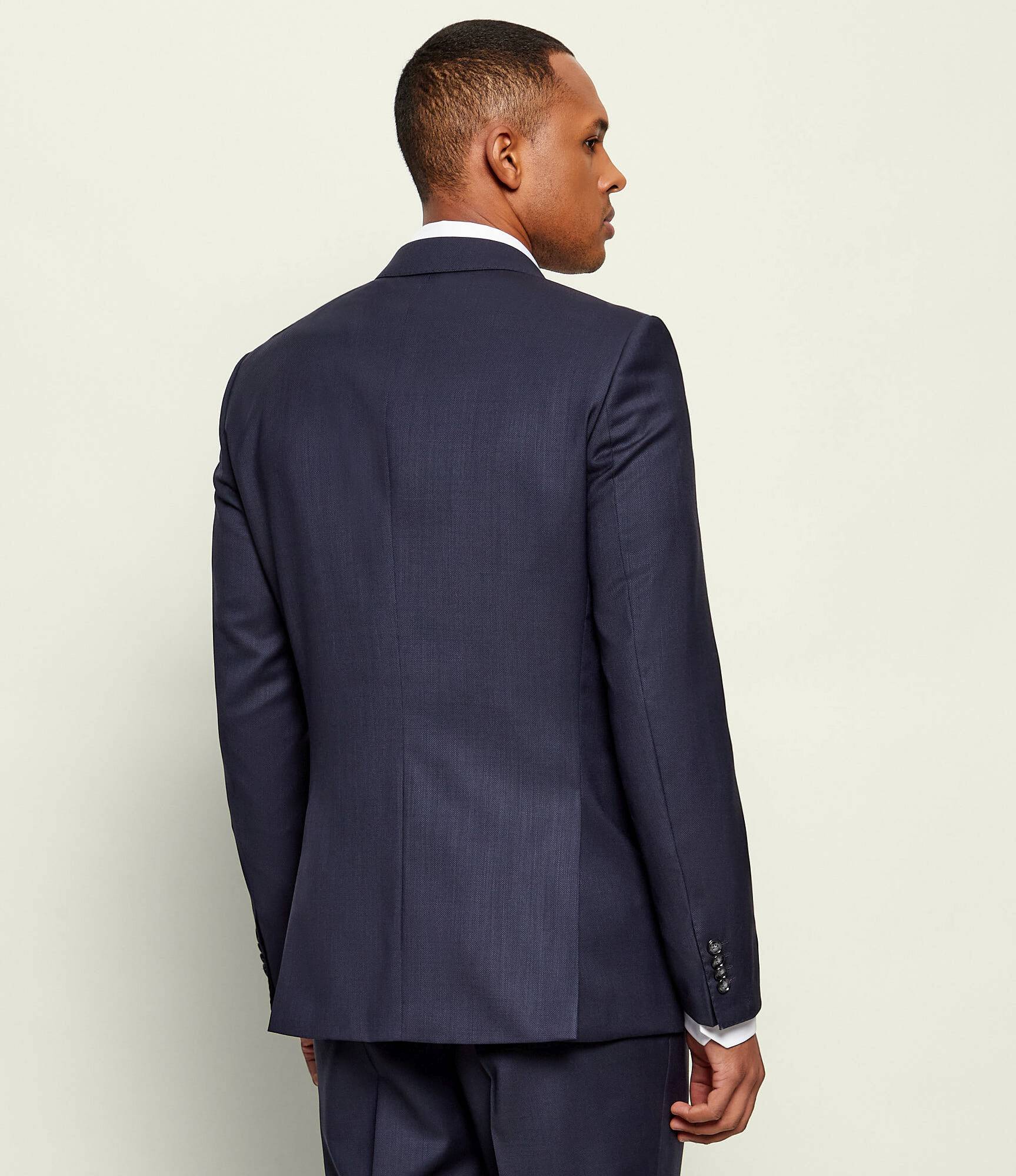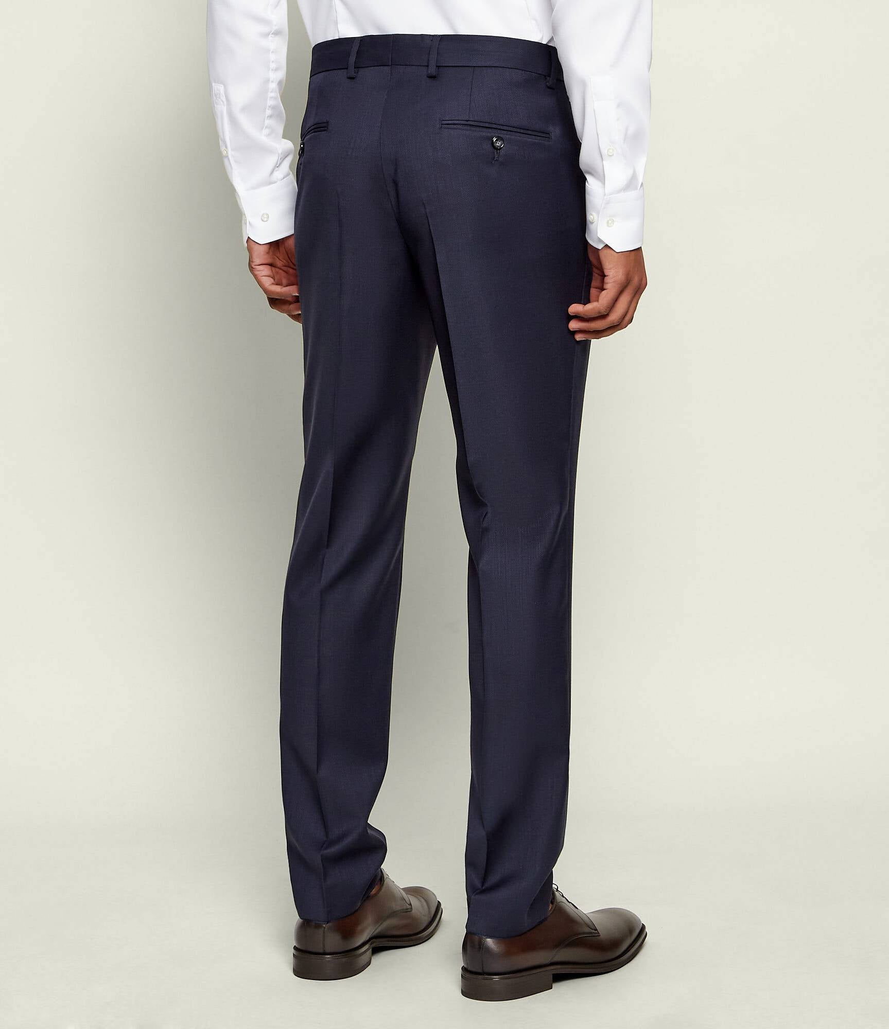 Den naturliga ullen ger optimal andningsförmåga och faller elegant över kroppen, vilket gör kostymen lika lämplig för formella tillfällen som för affärssammanhang.