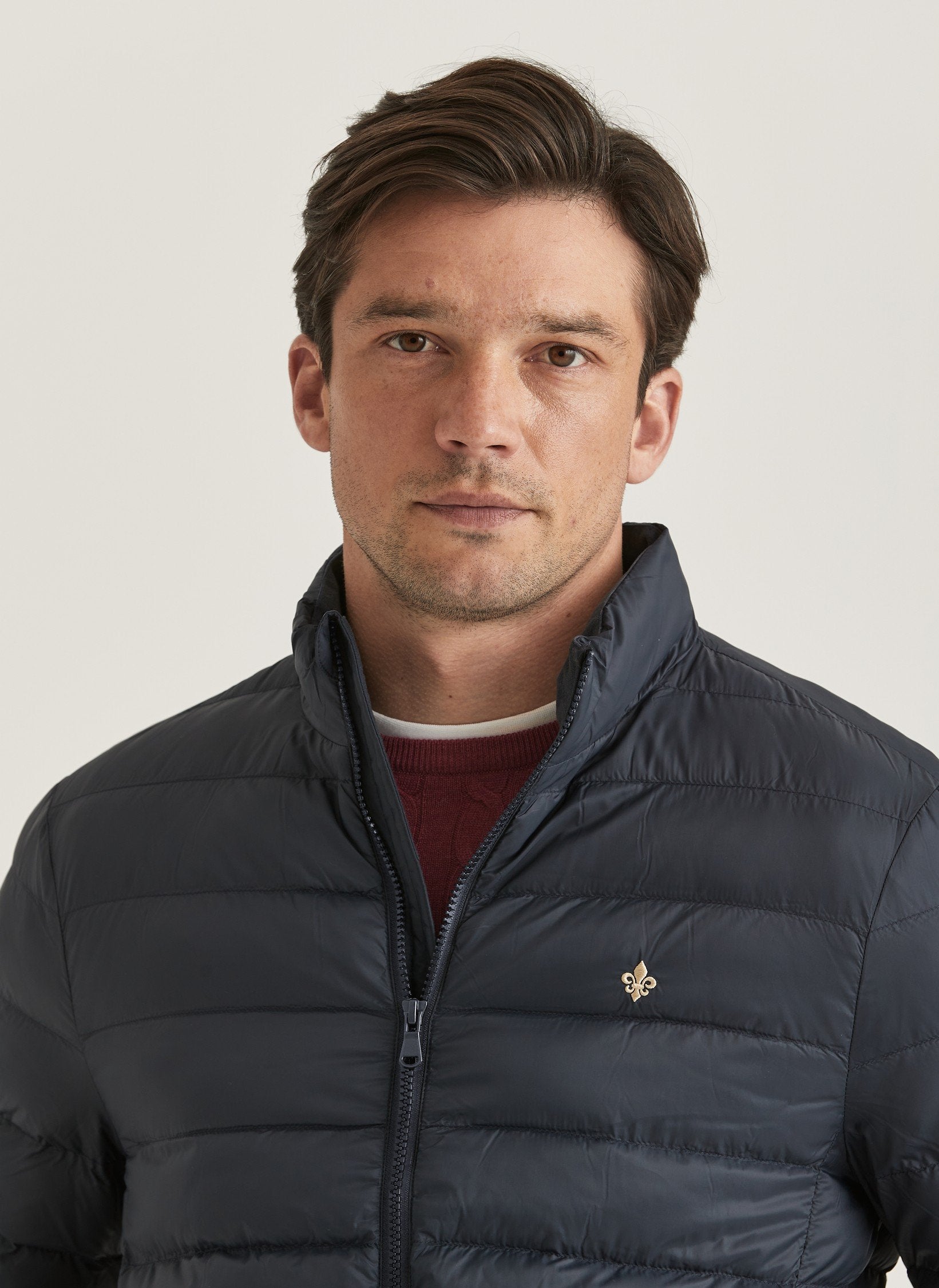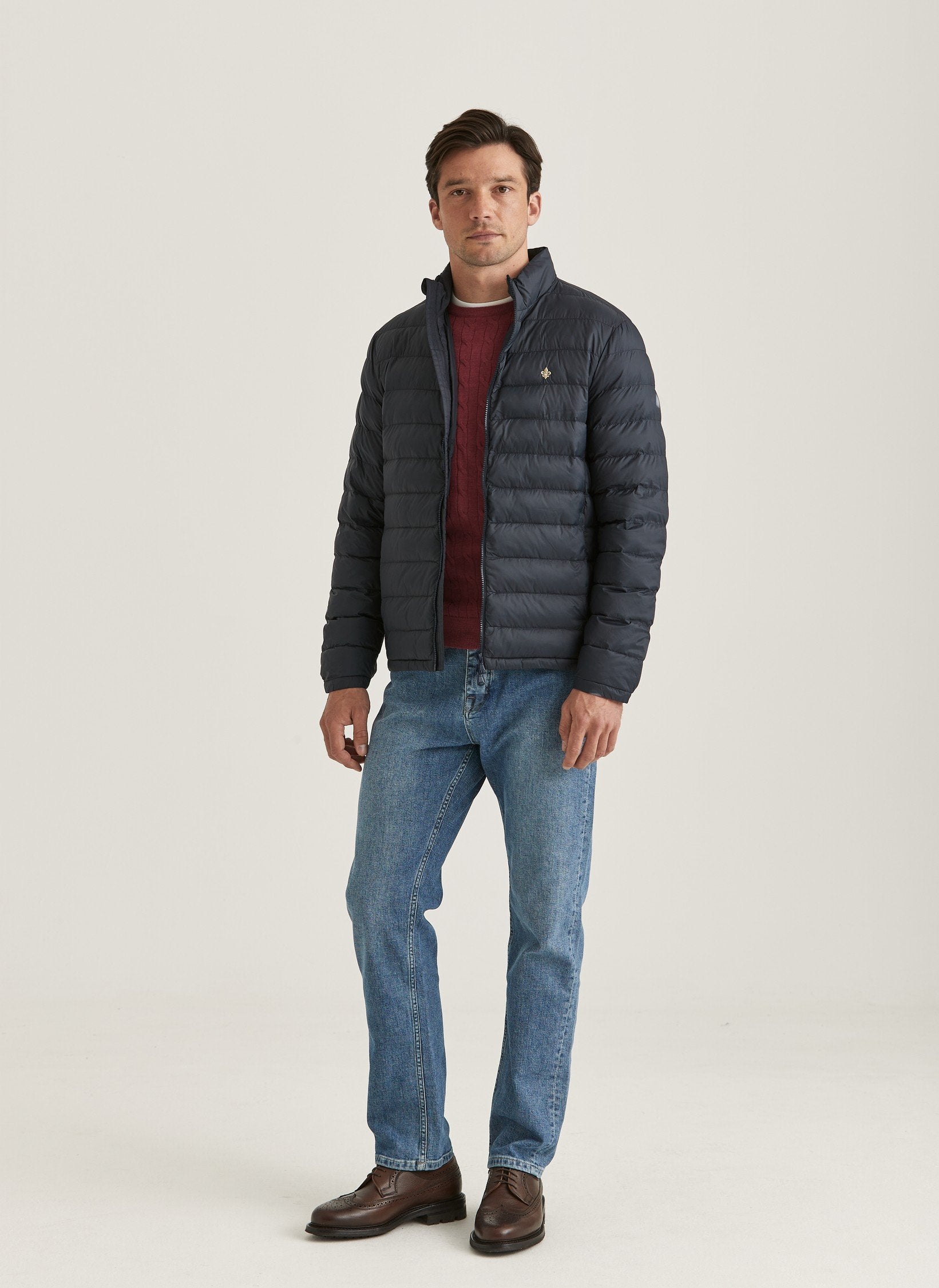 Morris Milford Liner Jacket är vår tolkning av den klassiska lätta quiltade linerjackan – ett mångsidigt plagg som blivit en självklar del av den moderna herrgarderoben. Enkel att bära, lätt att packa och stilmässigt rätt oavsett säsong.