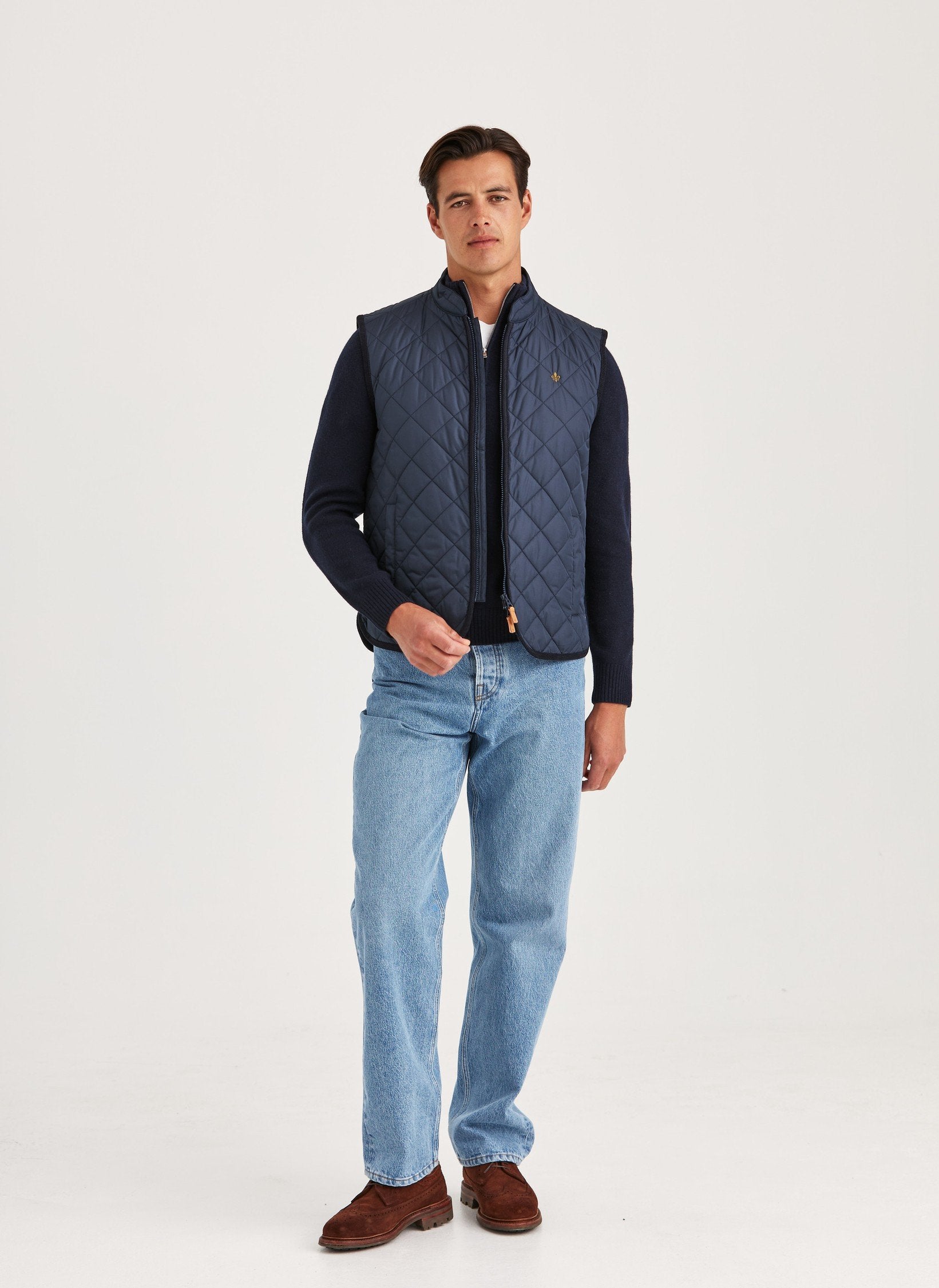 Morris Teddy Quilted Vest Herr 59 Marin Blå