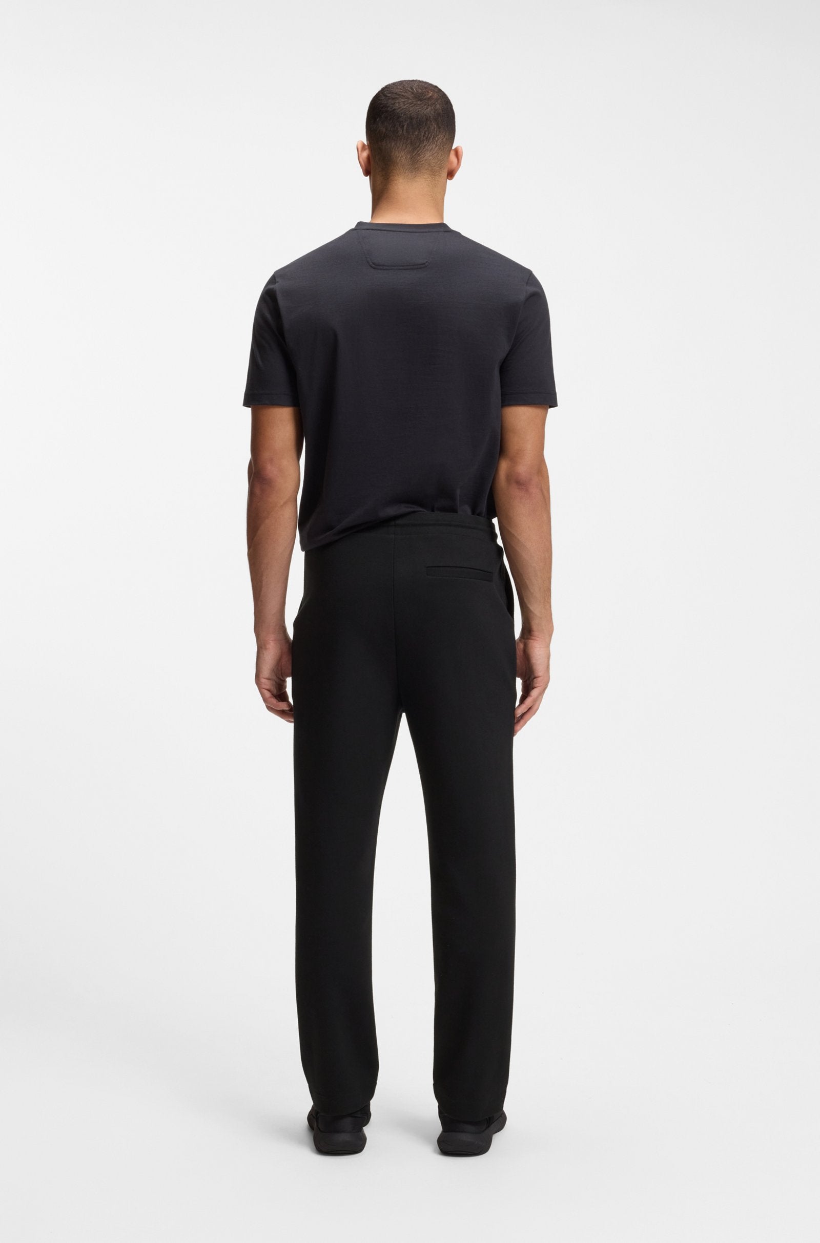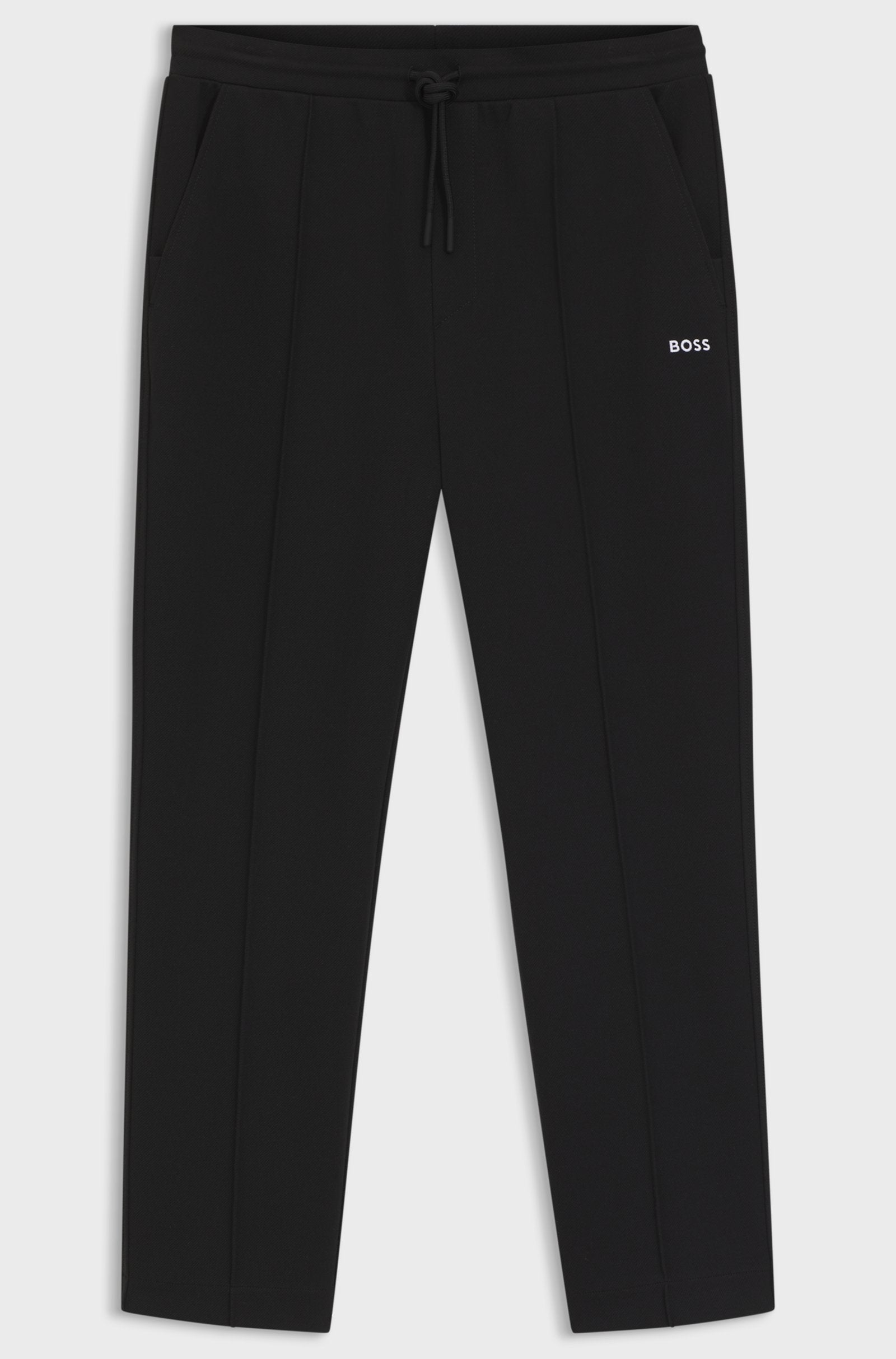 Dessa BOSS tracksuit-byxor i bomullsblandning kombinerar sportig komfort med en mer dressad silhuett. De pressade vecken framtill ger ett uppdaterat och stilrent uttryck som lyfter modellen från klassiska sweatpants till en mer sofistikerad vardagsbyxa.