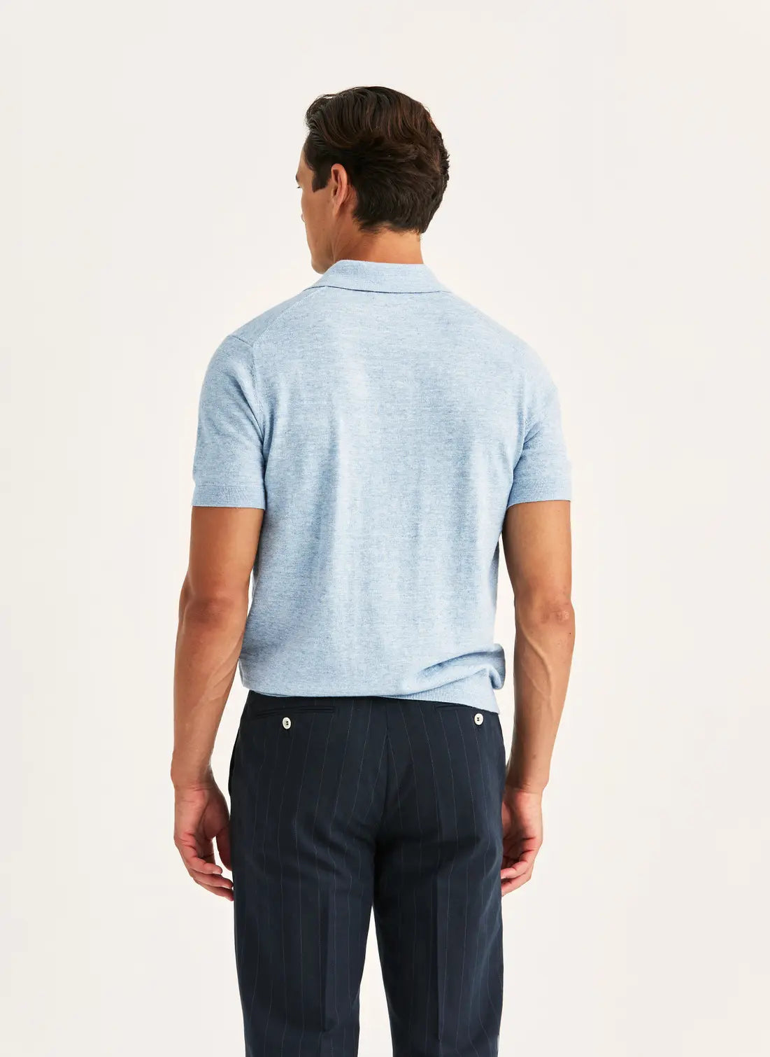 Morris Stockholm Randall Resort Polo är en kortärmad stickad polotröja i 100% bomull med en öppen krage och en normal passform som ger ett mer avslappnat och voluminösare intryck än kollektionens slimmare alternativ. Den konstruktionsmässiga distinktionen mot Dylan Piqué är central: Randall Resort Polo är stickad, vilket ger tyget en mjukare, mer draperad känsla och ett tydligare strukturmönster i ytan jämfört med Dylans vävda pikétyg, som är fastare och mer skjortliknande. Randall Resort Polo befinner sig i ett register mellan stickade tröjor och traditionella pikéskjortor och passar den som vill ha en polo med mer avslappnad karaktär och semester- eller resort-känsla. Plaggets silhuett är rakare med en bröstvidd om 53 cm och en bottenvidd om 44 cm i storlek M, med en plagglängd om 66 cm, och kragen faller öppet utan knappar i halsen, vilket ger ett generösare och friare halsutsnitt än en klassisk polokrage med knappar. Morris broderade signaturlilja på bröstet är placerad diskret på samma sätt som i övriga kollektionen. Tröjan kombineras naturligt med kollektionens linnebyxor och chinos och passar in i ett avslappnat sommar- och semesterregister såväl som i en mer välklädd vardagsstil. Tillgänglig i storlekarna S till XL och i fem färger: khaki, navy, olive, light blue och orange. Maskintvätt 30 grader, ej blekning, ingen torktumling, strykes ej.