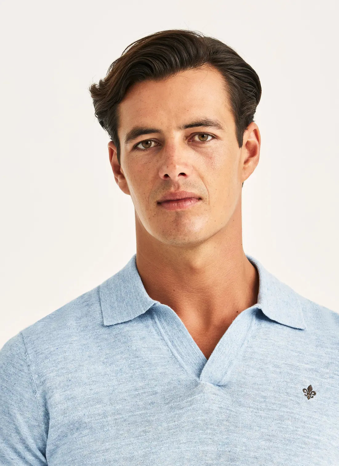 Morris Stockholm Randall Resort Polo i 100% bomull. Normal passform, öppen krage, stickad, broderad lilja. Köp hos Urban Modern. Fri frakt.