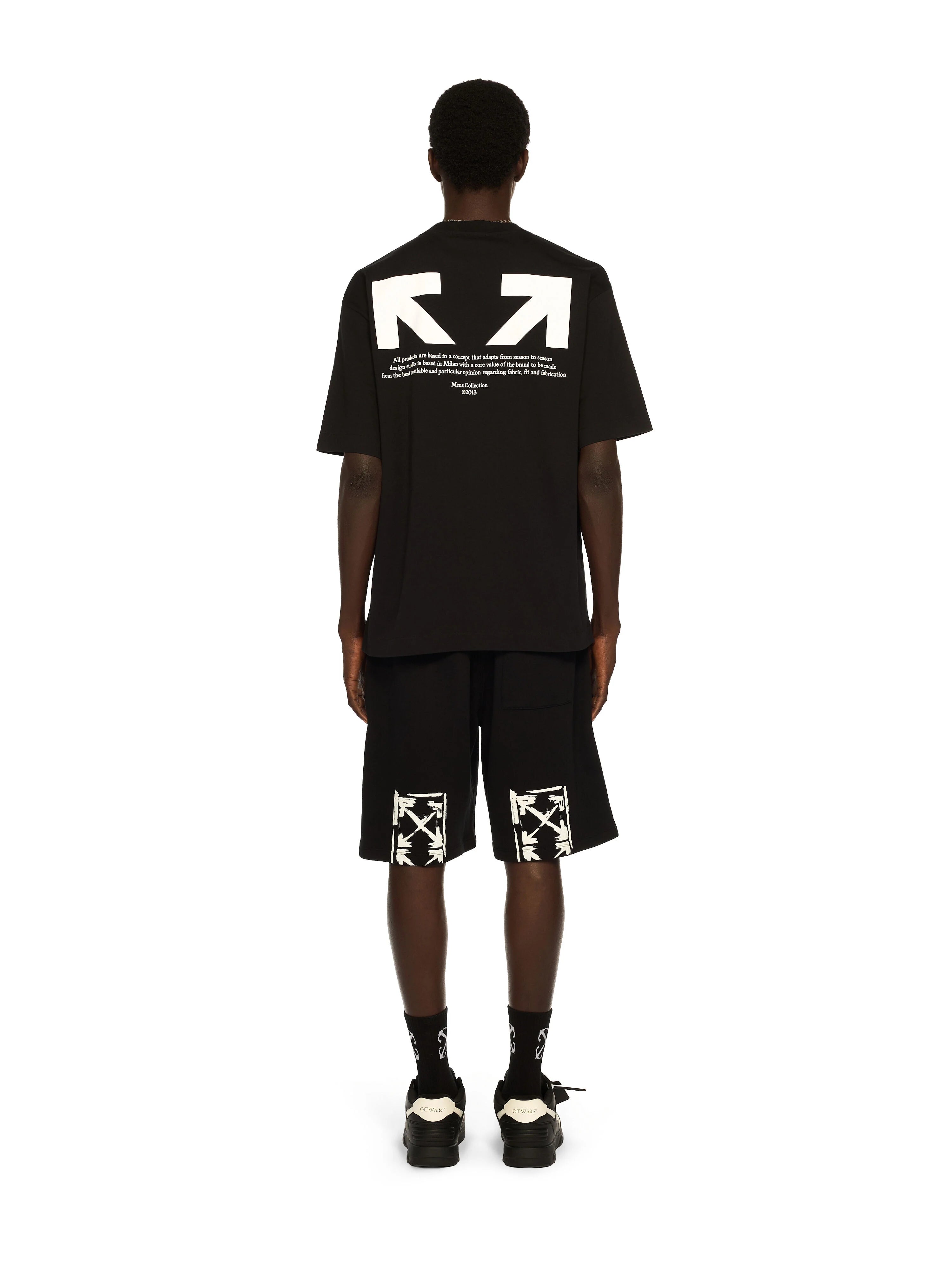 Tillverkad i 100% mjuk bomull levererar den både komfort och en premiumkänsla. Den svarta basen gör t-shirten mångsidig och enkel att matcha, medan det diskreta logotyptrycket framtill och den ikoniska Half Arrow-grafiken på ryggen ger en direkt igenkännbar Off-White-look.